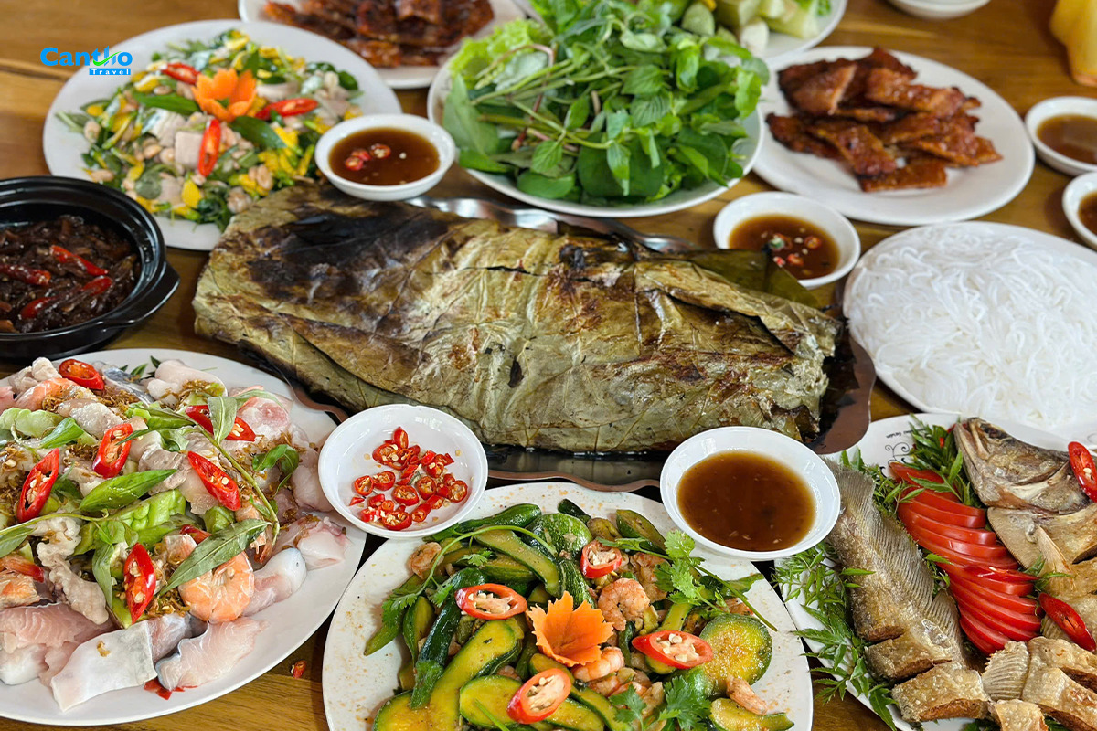 Thưởng thức bữa trưa đặc sản miền sông nước như: Cá tai tượng nướng lá sen, lẩu mắm miền tây, gỏi Cồn Sơn,… (Tự túc) |